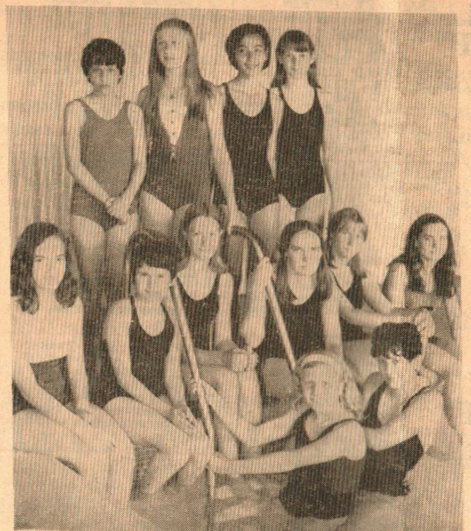 Seen before a training session are the swimming team from Bideford’s Stella Maris School. After winning the North Devon area title of the Catholic Schools’ Swimming Federation, they competed at the South West area finals at Charlton Park, Cheltenham. They finished third behind Bristol and Cheltenham. Local results included Elizabeth Adlington, Linda Locke, Helen Cooper, Joanne Payne, Marilyn Cuthill, Karen Locke, Jean Cooper, and Carol Booth.