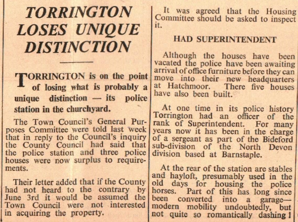 Torrington is on the point of losing what is probably a unique distinction – its police station in the churchyard.