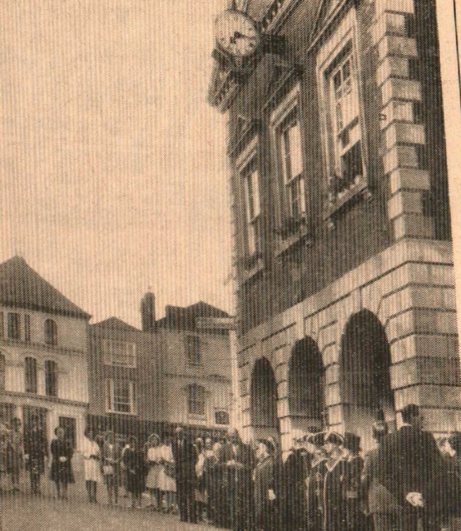 Following a short service at St Michael’s Parish Church, a new town hall clock, presented in memory of the late Mr Robert Maxwell Boyer, was dedicated at Torrington by the Vicar, Rev P G Harrison. The clock has been given to the town by Mrs Boyer, whose husband was a former Mayor of Torrington and served on the Town Council and other local bodies for many years. Representatives of the Council including the Mayor, Cllr W S Hutchings, and representatives of many local organisations attended the service and dedication ceremony in Torrington Square. Torrington Voluntary Silver Band were also present.