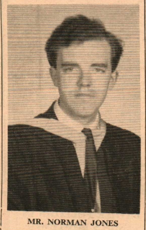 July 16th 1968 is going to be a memorable day for the Jones family of Appledore. Mr Norman Jones, only son of Warrant officer H R Jones RAF and Mrs Jones, of Hillview, Myrtle Street, Appledore, has obtained his Master of Laws degree. He had also passed his Bar finals. Mr Norman Jones was a pupil at Bideford Grammar School and subsequently at the North Devon Technical College, where he obtained four GCE A-level passes. He is now a pupil in Chambers in Leeds.