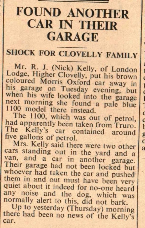 Mr R J (Nick) Kelly, of London Lodge, Higher Clovelly, found a different car in his garage.