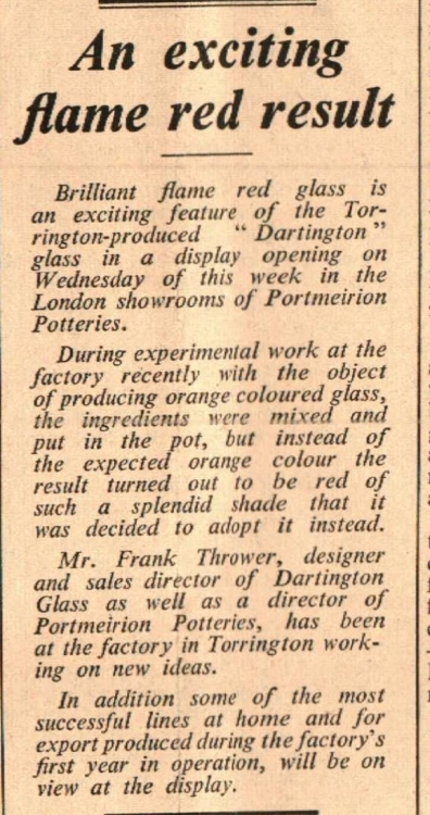 A Torrington produced ‘Dartington’ glass is on display in the Portmeirion Potteries. Mr Frank Thrower has been at the factory in Torrington working on new ideas.