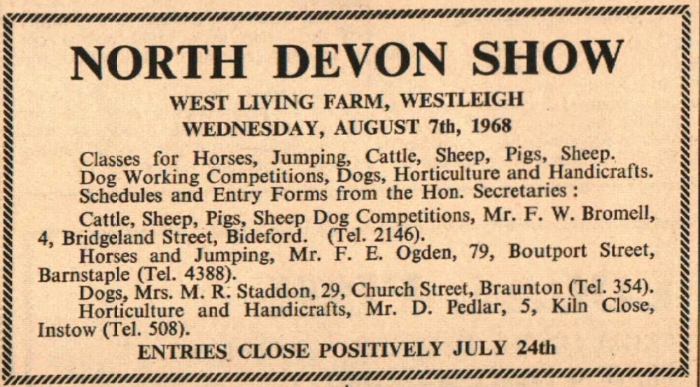 The North Devon Show will be held at West Living Farm, Westleigh.