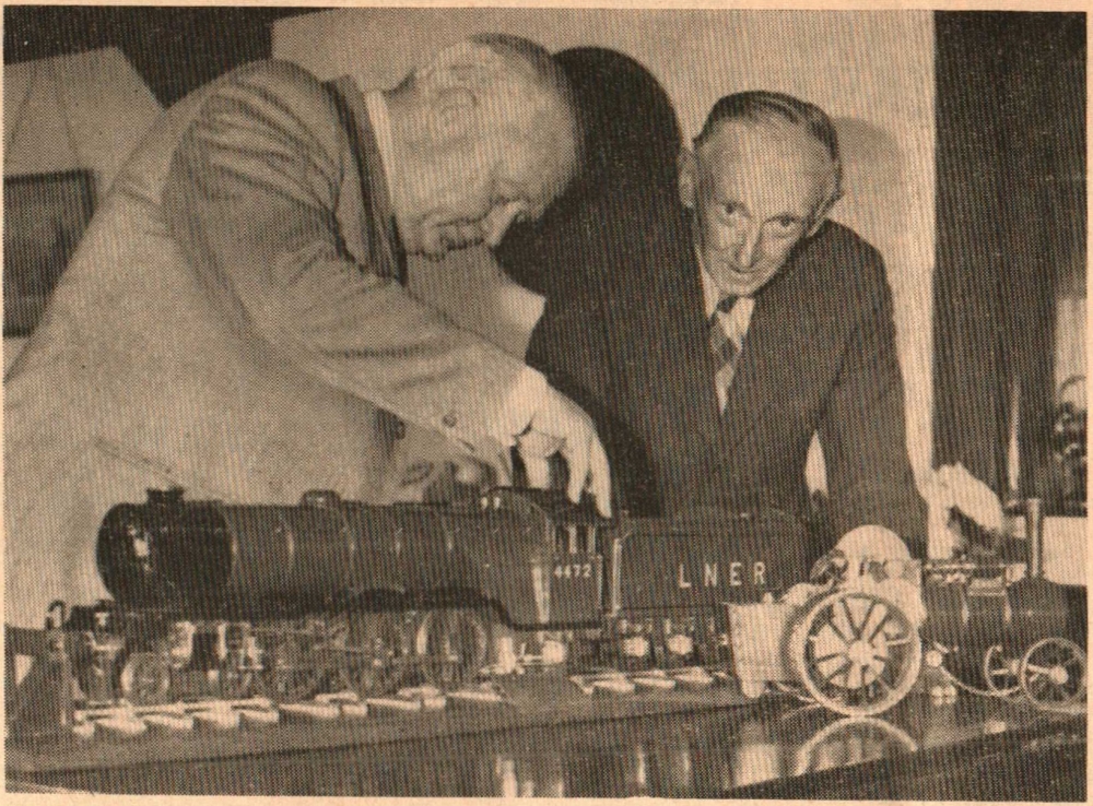 A working model of the famous engine The Flying Scotsman has been built by a Bideford businessman, Mr Leslie Braddick, of Vicosa, Westward Ho! and a friend, Mr Fred Rowe. At the touch of a switch compressed air revolves the wheels on a cut-out section of rail. Mr Braddick and Mr Rowe put in 300 hours’ work, spread over two years, working on the construction of the engine from blueprints which helped to ensure the model’s accuracy in every detail. “I feel now as though I could drive a railway engine if I had to,” commented Mr Braddick. Mr Braddick uses a well-equipped workshop at his home for his work. Future model making activities may include the new Cunard liner and also the Nonsuch, the vessel which had associations with the formation of the Hudson Bay Company and a lifesize replica of which is now under construction at an Appledore boatyard.
