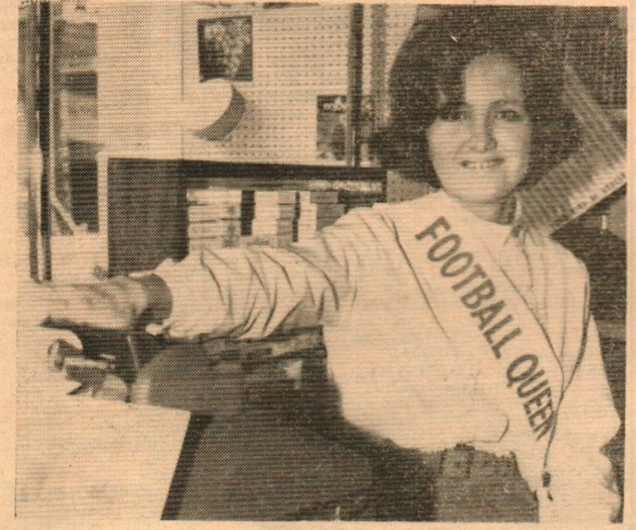 Bideford AFC Football Queen, 20 year old Miss Pat Thomas, is the younger daughter of Robins’ vice-chairman Mr Fred Thomas. Pat, seen at work in her father’s grocery shop in Buttgarden Street, where she has been since leaving school, sold 2,660 tickets. She has previously been an attendant to Bideford Carnival Queen.