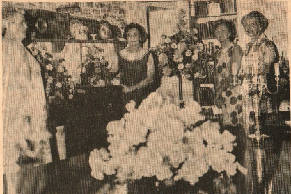 Flowers and history were delightfully combined at Old Ford House, Bideford, when a floral festival raised £91 for the organ fund of St Mary’s Church. Old Ford House, parts of which date back 600 years, is the home of Mr and Mrs C A Jourdan. In the photograph are some of the leading helpers – Mrs A Wensley; the Mayoress of Bideford, Mrs P J V Fulford; Mrs F Gill and Mrs C Featherstone.
