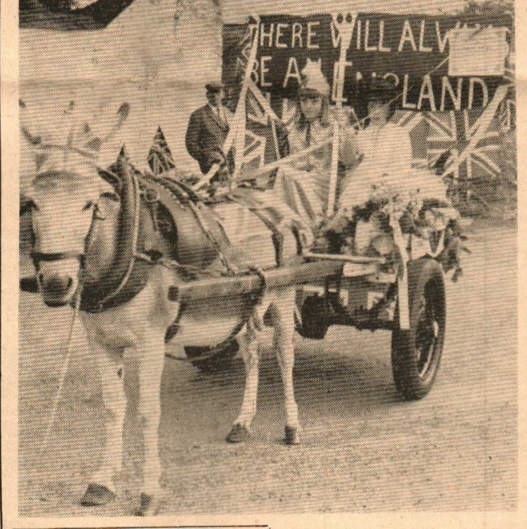 A series of interesting and entertaining events have been arranged for Carnival week at Hartland. At a gathering at the Church Hall, when a sale was organised by the Youth Club, the Carnival queen, 16 year old Brenda Lovell, was crowned by Mrs F G Thomas, wife of the Methodist minister. The attendants, Jennifer Jeffery and Mandy Fenton, also received their crowns. Mrs Thomas also crowned the fairy queen, Christine Prouse, who was attended by Jayne Bamford and Sally Skinner. Last year’s Carnival queen, Christine Dennis, presented Mrs Thomas with a bouquet. Traditional transport and a traditional theme – ‘There’ll always be an England’ – was among first prize winners which was entered from the hamlet of Stoke.