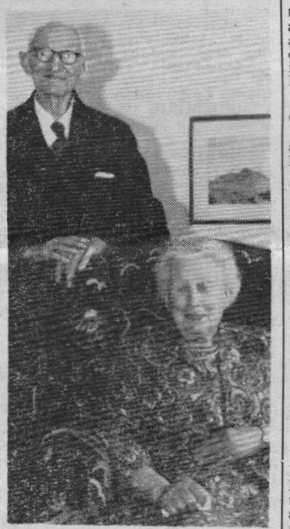 Mr Eli Cox, of Osiers, Lower Cleave, Northam, had no doubt what to give his wife for a diamond wedding present. He bought her an artist’s easel. For at the age of 82 Mrs Cox had taken up painting. She has had no training and previously had rarely used a paint brush, but her work, especially her landscapes, achieve a remarkable standard. Mrs Cox has now completed over 100 paintings. Born in Lower Meddon Street, Mr Cox was educated at Bideford Church School. As a young man he rowed for Bideford Athletic Club. He went to London after having served a 7 year apprenticeship with James Lamerton, a builder, and returned to Bideford later to set up in business of his own. An Australian by birth, Mrs Cox came to England with her parents.Mr and Mrs Cox have three children – Cyril, Mrs Phyllis Bosworth of Carlisle, and Mrs Vera Cudmore, who lives in Sussex. There are 3 grandchildren – Mrs Judith Simmons, Miss Joan Cudmore and Mr Andrew Cox, and 4 great grandchildren – Katie and Ruth Simmons, and Robin and Julia Cox.