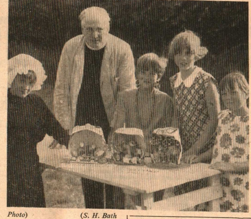 Shell grotto making, an old Spanish St James’ Day custom, has been revived in rural Devon. And here Parkham children are seen with their creations. St James’ Church annual fete more or less coincides with the patronal festival and the Rector, Rev J E Lynn, recalled that when he was a child in London, children used to make shell grottoes in the streets using oyster shells.