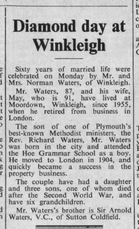 Mr and Mrs Norman Waters, of Moordown, Winkleigh, celebrate their diamond anniversary.