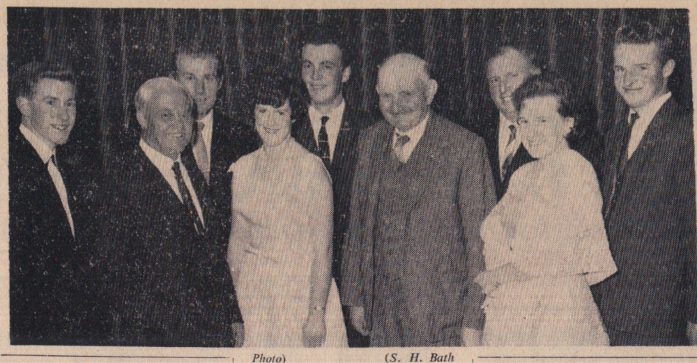 Officers of Alverdiscott YFC, photographed with principal speakers, Mr F Coleman and Mr W Shapland, and Mr W Gubb, at the club’s annual dinner and dance at Alverdiscott Hall. Other officers are Mr P Squire, Mr D Hopkins, Miss C Holland, Mr T Johns, Miss S Lauder, and Mr P Kelland. Last week the YFC held a harvest festival service, the preacher being the Rector, Rev B Tinsley. The service was followed by a supper and auction which made over £19. This was sent to the Charlie Chester Homes. The auctioneer was Mr H Pavitt.