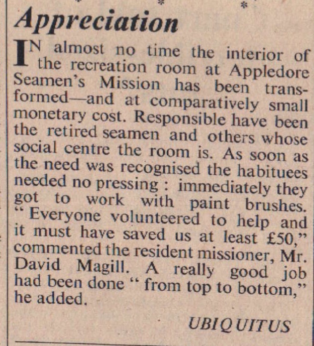 The Appledore Seamen’s Mission has been transformed saving at least £50 says Mr David Magill.