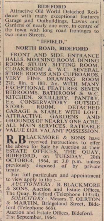 Bideford licensing justices approved plans for the addition of 26 bedrooms to Tanton’s Hotel, Bideford. The extension, it was said, would take in the whole of Hampton Terrace, but there was no intention to alter the river front of the property, a registered building. Mr G N Crowther appeared for the hotel.
