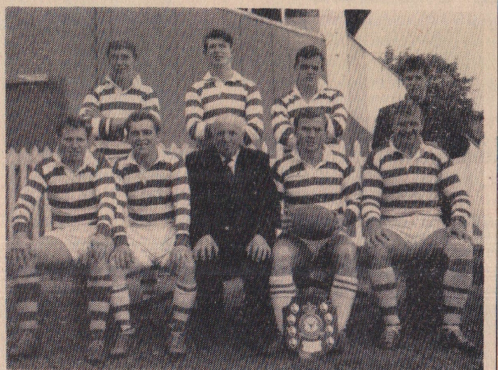 Even before the new season on grass pitches had started Bideford Rugby Club found themselves the winners of a trophy. It was won at the sevon-a-side tournament on the sands of Westward Ho! some weeks ago. In the photograph are J Folland, M Morris, M Eastman, A Harris, C Balsdon, R Hunkin, W J Lock, T Langbridge and G Squires.