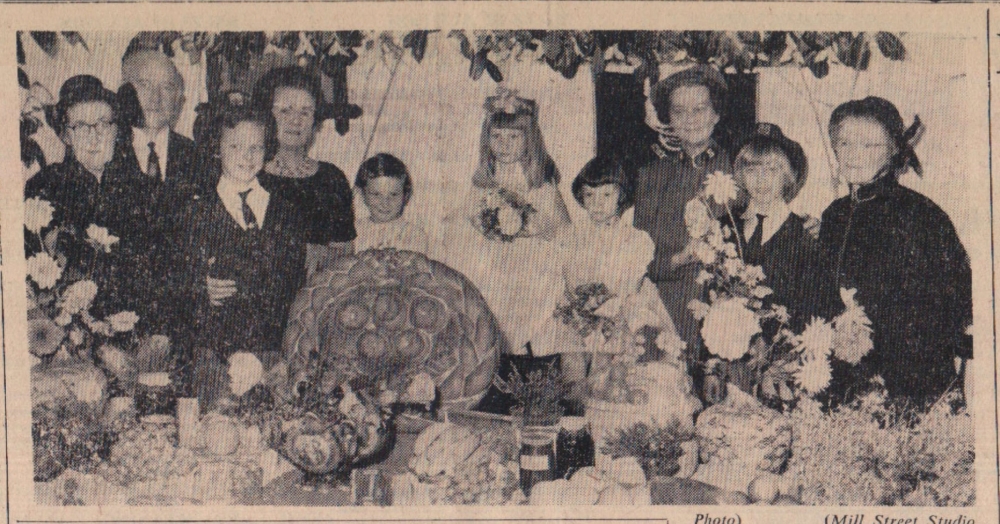 For the first time a junior harvest queen was crowned at Bideford Salvation Army young people’s harvest festival held at headquarters, 4 Honestone Street. She is Lynn Cole, daughter of Mr and Mrs Reg Cole, 4 Meddon Street. In the presence of a good congregation, and in a hall that had been effectively decorated with flowers and produce by Mr Waring and helpers, she was crowned by Mrs F Patt who was received by the Commanding Officer, Envoy Rita Baker.