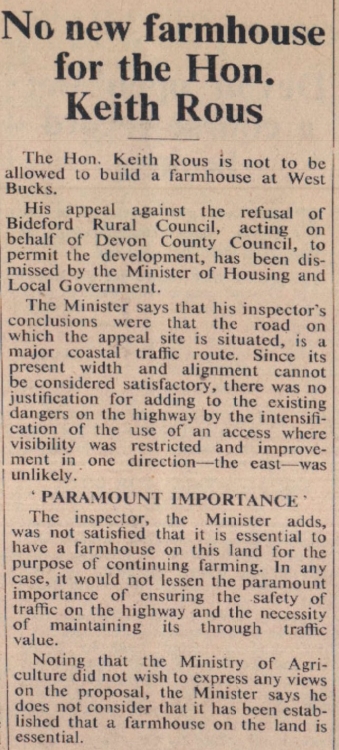It’s a refusal for the Hon Keith Rous to his request to build a farmhouse at West Bucks.