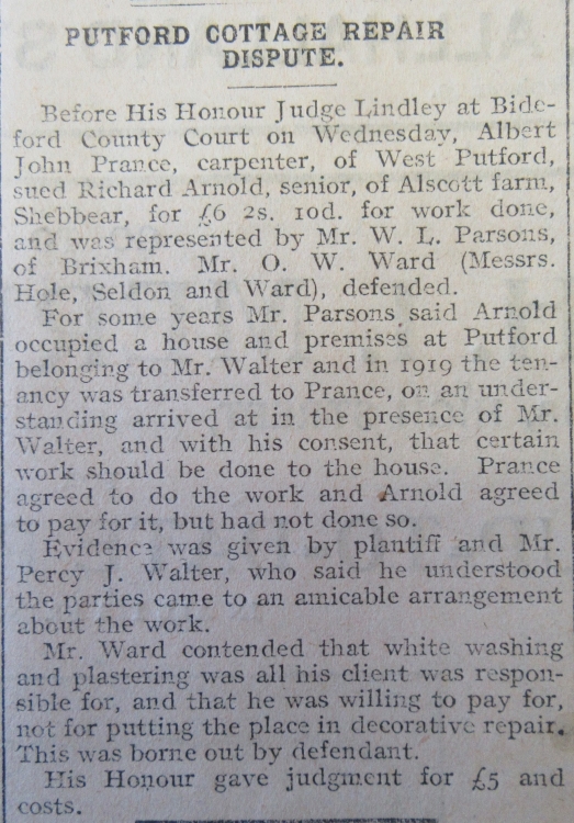 Albert John Prance of West Putford sues Richard Arnold of Alscott Farm, Shebbear.