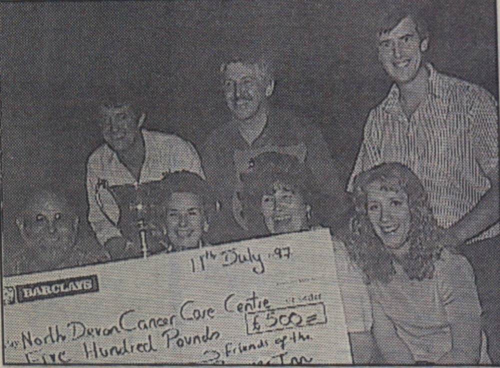 Her home town was where North Devon Cancer Care Trust founder Jennifer Bonetta went to receive a cheque for £500 toward the chemotherapy unit at the district hospital. The Beaver Inn at Appledore where the presentation took place is a stone’s throw from the house in Irsha Street where Jennifer was born. The idea to help the trust came from Mrs Chris Rendall whose husband died from cancer. With her daughter Karen and the backing of the pub landlord, Graham Stone, a euchre tournament and raffle were held. Joining in the cheque presentation are Nathie Sharrock, Alan Craner, Graham Stone, John Smale, Jennifer Bonetta, Chris Rendall and Karen Rendall.