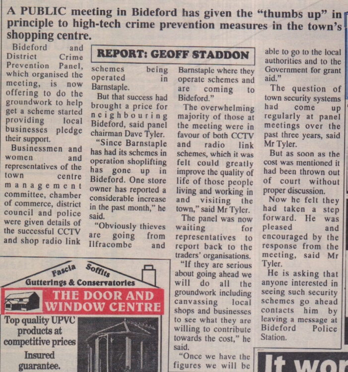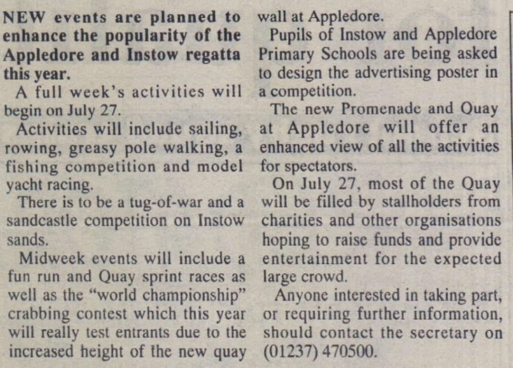 Since the launch of a mammoth fund raising task a year ago the village of Appledore has achieved more than half the £250,000 needed for repairs to its parish church. “We circulated every house in the parish and wrote to many charities, industries, retailers and organisations. The result has been marvellous and over £130,000 has so far been raised” said restoration fund chairman Mike Wilcox. This had enabled them to re-roof the two side aisles, re-point most of the outside of the church and start work on repairing and reforming the stained glass windows and surrounds. “At least the church should now be wind and water proof for the winter” said Mr Wilcox. But much work still remains and a second phase appeal will be launched this autumn to raise the outstanding amount needed.
