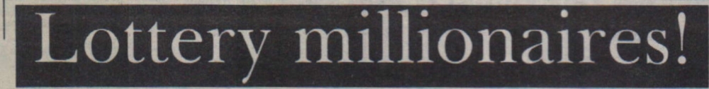 Bideford toy shop owners Ron and Barbara Martin went out for a drive on Sunday unaware that their National Lottery ticket had made them millionaires. They had not watched the draw on television and they could not find the numbers in the their Sunday paper. It was not until Monday when Barbara was visiting a friend that she checked the draw on Teletext. “I could hear by heart beating as I checked the list. I must have checked in half a dozen times. It was like being in a trance.” Their lucky numbers, Barbara revealed, had been given to her by a local tarot card reader! The Martins received their £2.7 million cheque at a reception at the Commodore Hotel, Instow.