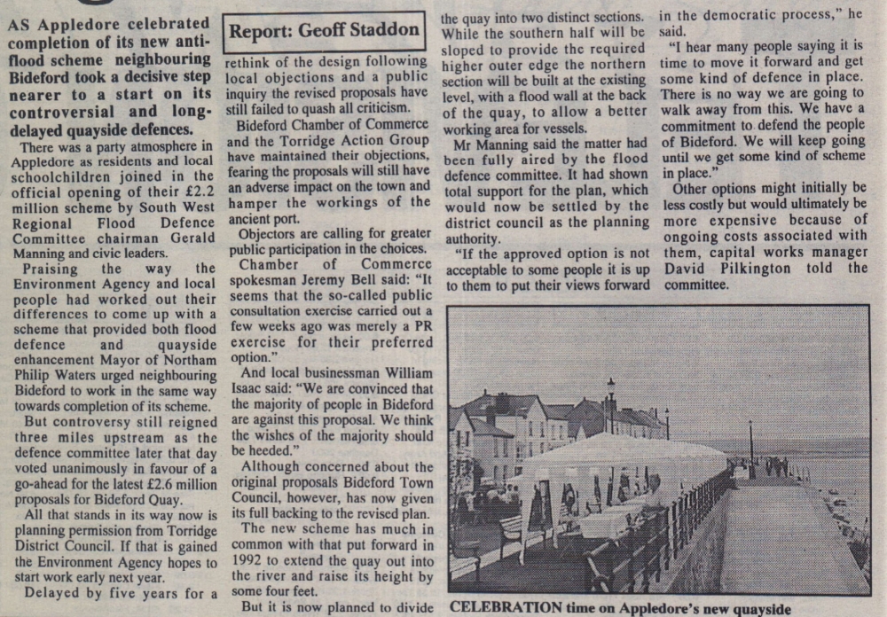 Appledore celebrates its new anti-flood scheme and Bideford takes a decisive step towards quayside defences.