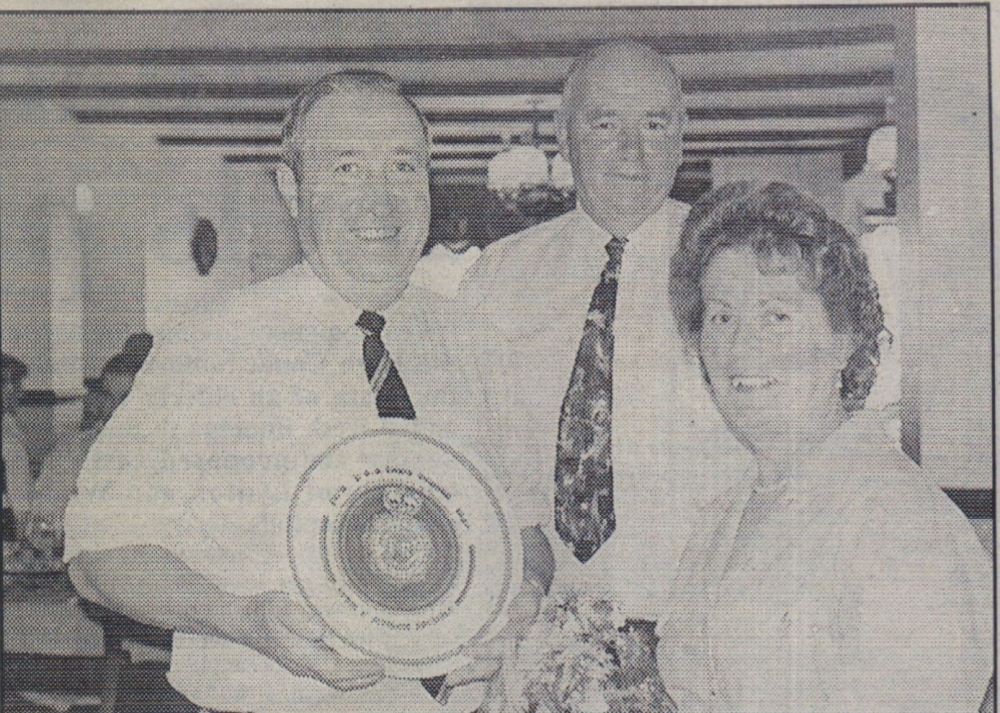 Fund-raising foot-a-fete for skittlers with plaques presented by Graham Bond. Winners of the baby show were Justine Potter, Brian Vickery, Dean Kelly, Darren Hookway, Susan Prance, and Nicola Andrews.