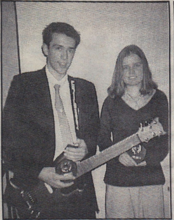 Students from Grenville College in Bideford carried off top honours at the finals of the Devon Young Technologist competition, organised by the Rotary Clubs. Matthew Sherry from Buckland Brewer and Rebecca Dixon from Langtree made music in more ways than one. Matthew took the overall award with an electric guitar which he made for his design and technology GCSE examination. Rebecca has had several offers for the music stand which brough her the runners-up award. But she intends to use it herself while playing clarinet in the school orchestra. Grenville College was presented with a shield as the winning school, while Matthew received £300 and Rebecca £75.