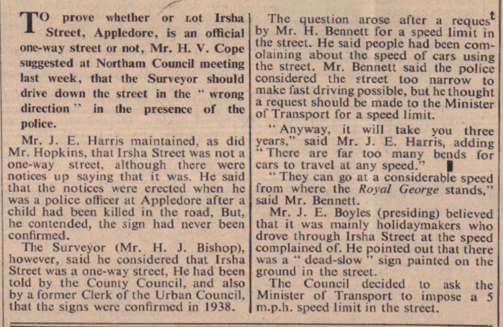 Council to ask for 5mph limit in Irsha Street, and is it one-way or not?