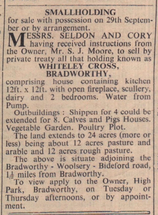 A smallholding, Whiteley Cross, at Bradworthy is for sale.