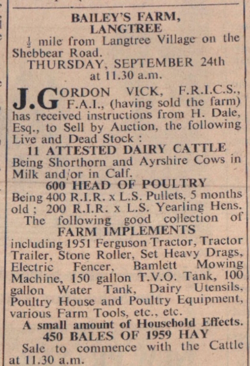 Bailey’s Farm, Langtree, is selling stock.