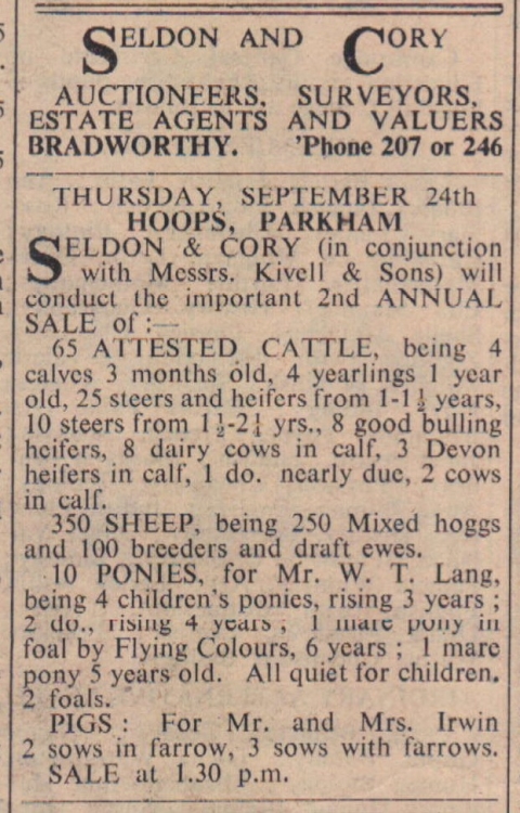 Live stock, furnishings and effects are for sale from Lendon, Abbotsham.