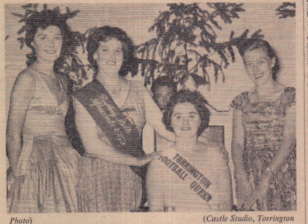 Miss Jeanette Cockwill, one of Torrington Football Club’s keenest supporters, was selected from 22 contestants, Torrington’s Football Queen. Judges were Mrs Ethel Vickery, Ilfracombe Bathing Belle, and her two attendants, Mrs Greta Moore and Miss Diana Rogers. The judges were presented with bouquets by last year’s Football Queen, Miss Shirley Stacey, who was thanked by the President, Mr W H Jenkins. Runners up to Miss Cockwill were Miss Barbara Squire, Miss Anne Savory, Miss Sheila Snell, Miss Valeries Avery and Miss Rosemary Thacker.