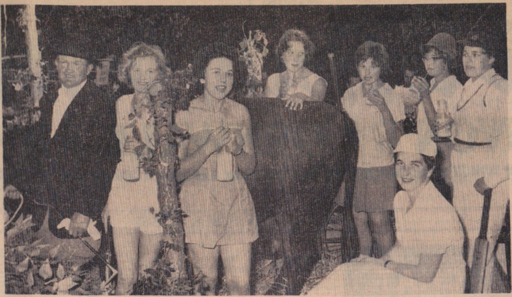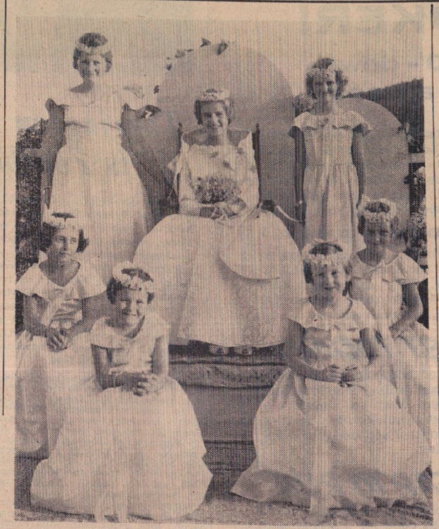 Pretty as a picture indeed…. Carnival Queen of Weare Giffard, Miss Wendy Smalldon, with her attendants, following her crowning by Lady Anne Palmer, Mayoress of Torrington.