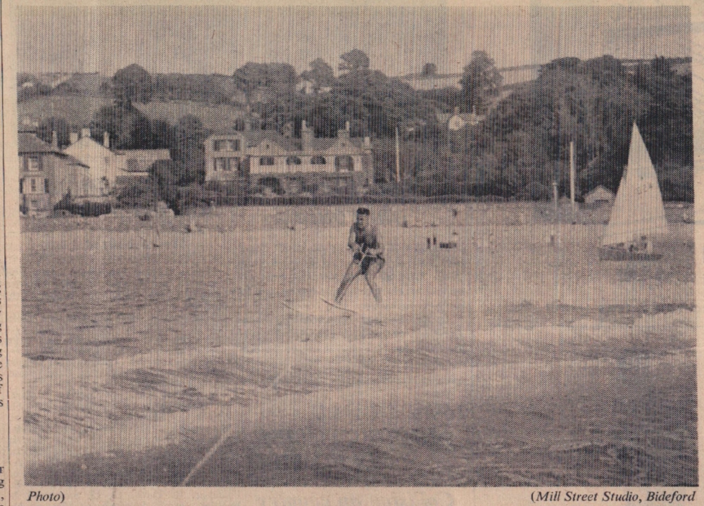 A feature of the Port of Bideford Regatta will be the demonstration of water skiing by North Devon amateurs. Mr John Oliver is the organiser of the event. A year or two ago, he designed and built his own speedboat. Among others who may be taking part will be Bob and Hill Aston (niece of Mr C F Stephens, of the RND Golf Club), Bob Williams and T D Derrigan, and Christopher Slee (son of Mr Gerald Slee, former Regatta Committee chairman).