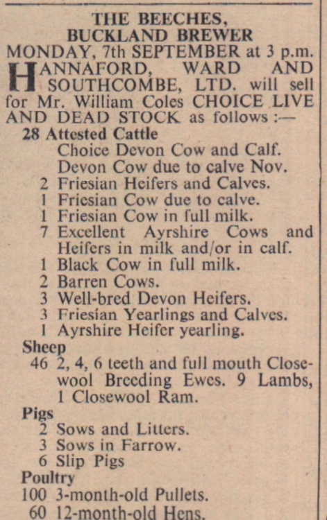 Stock is being sold at The Beeches, Buckland Brewer, on behalf of Mr William Coles.