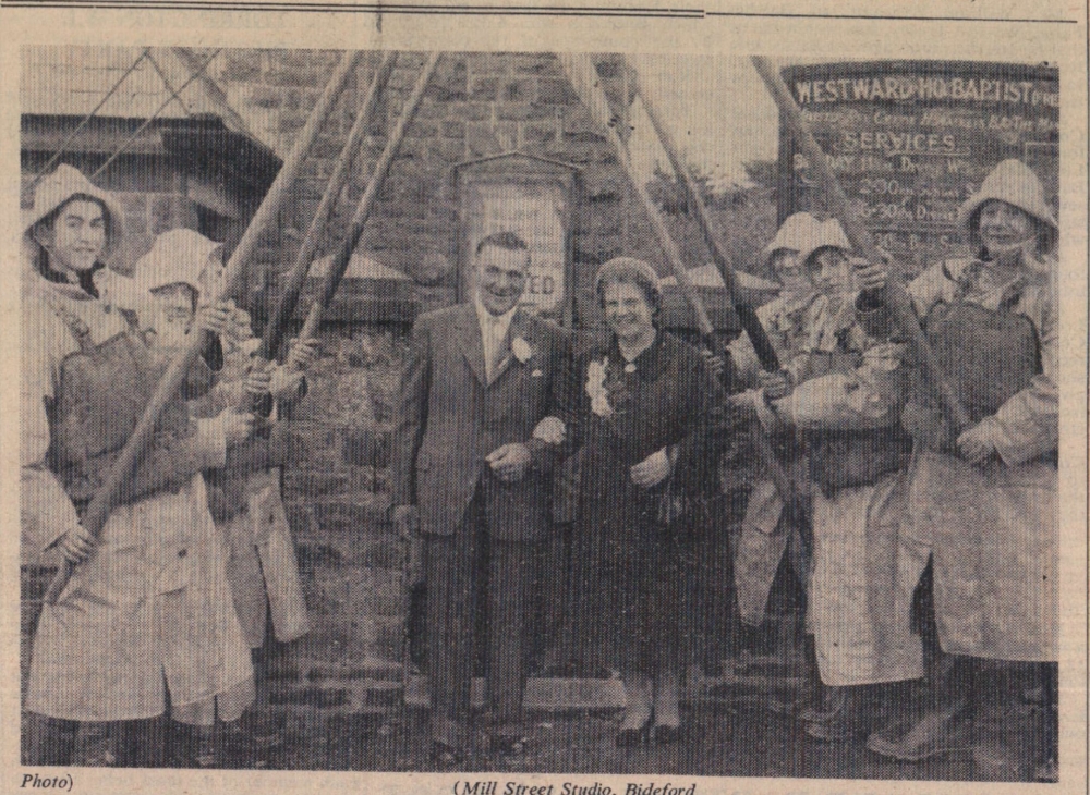 Mr Sidney Cann, of 57 Irsha Street, Appledore, coxswain of Appledore lifeboat, and Mrs Ruth White, of Cranford House, Westward Ho! who were married at Westward Ho! Baptist Church, had planned a quiet wedding but members of the lifeboat crew had other ideas. Under the leadership of the engineer, Mr L G W Richards, they formed a guard of honour outside the Church and gave the couple ‘a roaring send-off.’ Rockets soaring into the air set all the local dogs barking, Mr Richards told the Gazette, and indicated to Capt P Brennan, local hon. secretary of the RNLI ‘Cox’n spliced: launched on service.’ Mr Cann, is understood to be the longest serving officer in the Institution. He has served with the Appledore lifeboat for more than 30 years and holds the Institution’s bronze medal and bar. He has helped to save some 250 lives and also holds a silver medal for long service. His bride owns a baker’s shop in Westward Ho! The Rev G H Watkeys officiated at the service and Miss Beer was the organist. Given away by her son, Mr Peter White, the bride wore a black dress with a turquoise bodice overlaid with black lace, a black coat and turquoise accessories. Mr Richard Cann, nephew of the bridegroom, was best man. Following a recpetion at Beachlea Café, Mr and Mrs Cann left for a honeymoon in Eastbourne.