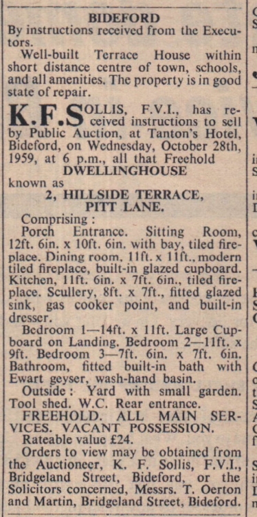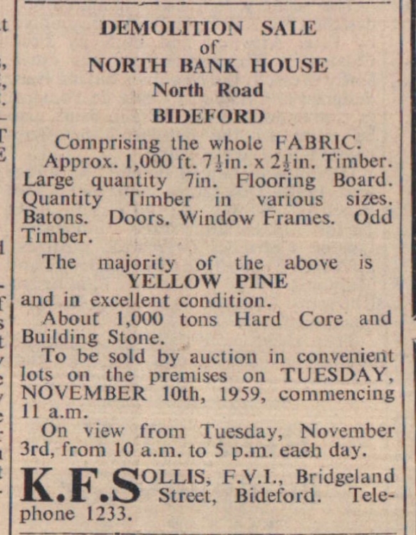 There is a demolition sale of North Bank House, North Road, Bideford.