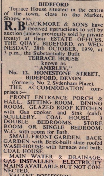 Anerley, 12 Honestone Street, and 2 Hillside Terrace, Bideford, are for sale.