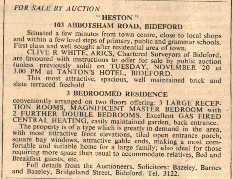Heston, 103 Abbotsham Road, Bideford, is for sale by auction.