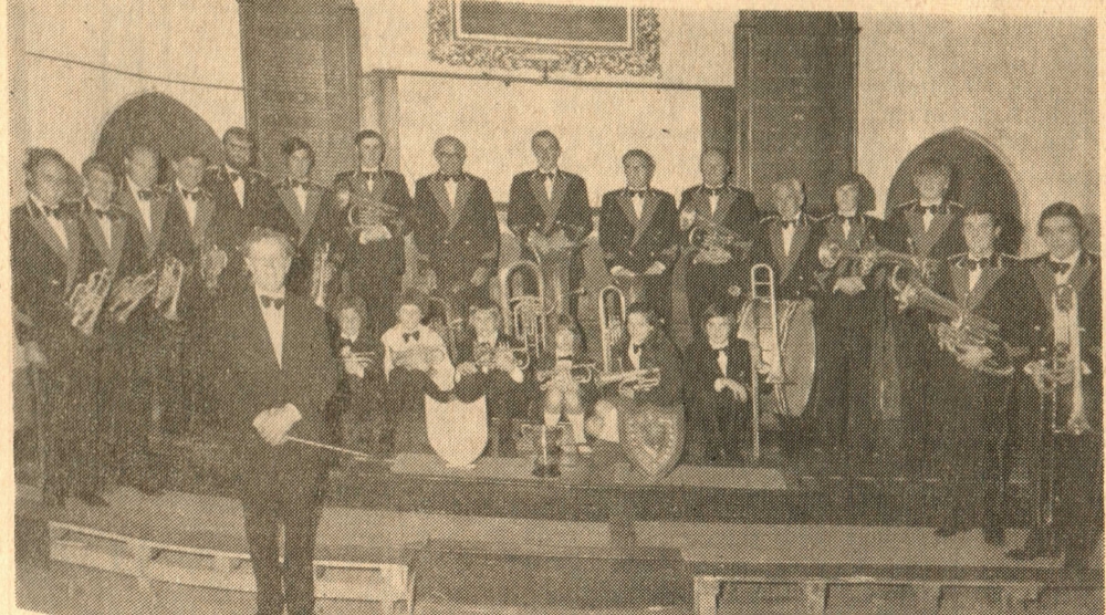 Since its re-formation in 1960 Hartland Town Band has gone from strength to strength both in numbers and success. Under Mr Harry Dayman, who took over as bandmaster in 1968, the band this year achieved its most notable triumph. The band is now 30 strong, not counting the growing group of young members. The first Hartland band started with a practice session in Manor House Barn between 1860-70. After a lapse it was re-formed after the first World War and continued until 1939. In 1946 Harton Town Band came into being and ran for three years before it, too, was disbanded. Two of the members of this band were among 25 members who re-formed under Mr Gerald Thorne to lay the foundations of the present band.