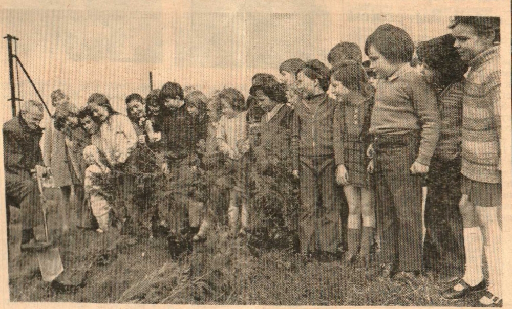 These children of Instow County Primary School watching the planting of some of the 150 trees given by one of the school managers, Mr W R Yeo, will have put their schooldays behind them by the time the conifers have grown to any appreciable size. The trees will not only enhance the appearance of the school playing field, but act as a welcome windbreak from the Atlantic storms.