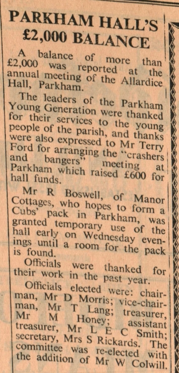A balance of more than £2,000 was reported at the annual meeting of the Allardice Hall, Parkham.