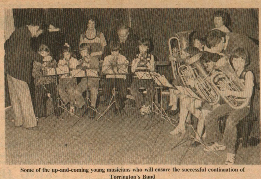 Torrington Voluntary Silver Band can probably claim the title of the area’s most youthful band, with 16 of its 24 regular members still attending school. And it is believed to be the town’s first truly voluntary band, running its own affairs and not controlled by the town council. It came into being when in 1952 a small group of music lovers met in a South Street Torrington café, owned by Mr Jack White, who was to become its first chairman. Former Royal Marines bandsman Mr Herbert Oke, a member of the original ‘Karno band’ was one of the founder members.