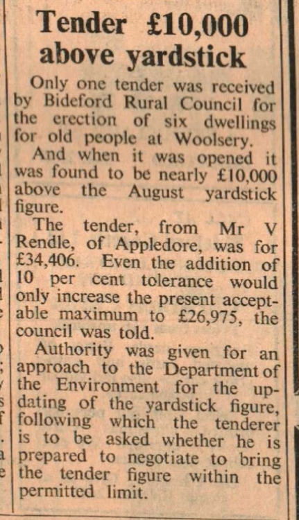 Tender from Mr V Rendle of Appledore, £10,000 above yardstick.