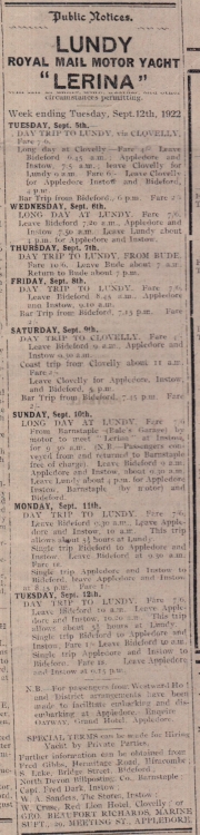 The Lerina, the Lundy Royal Mail Motor Yacht, is undertaking day trips.