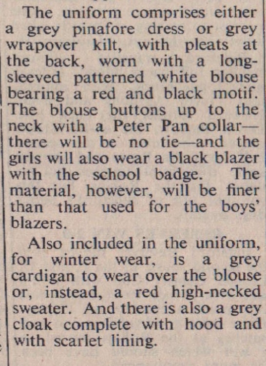 On public view for the first time was the new uniform which has been designed for girls attending the Grammar School. It may be claimed that a full circle of association has been appropriately completed for it was the bequest in 1689 by a woman, Mrs Susannah Stucley, of £200 for the maintenance of a grammar school at Bideford that began the real documentary history of the school.