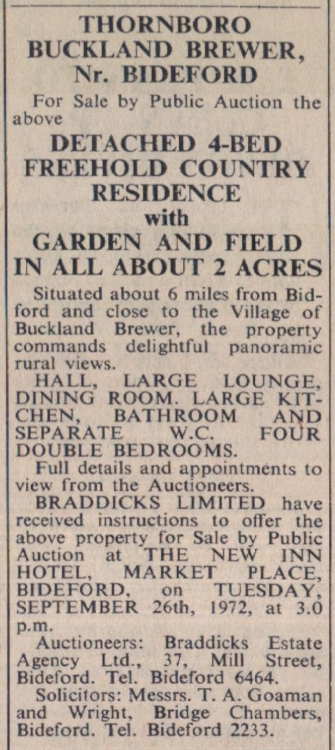 Thornboro, Buckland Brewer, is for sale by Public Auction at the New Inn Hotel.