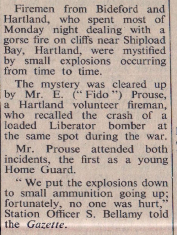 Explosions ‘mystery’ at Hartland cliff fire but Mr E Prouse solves it.