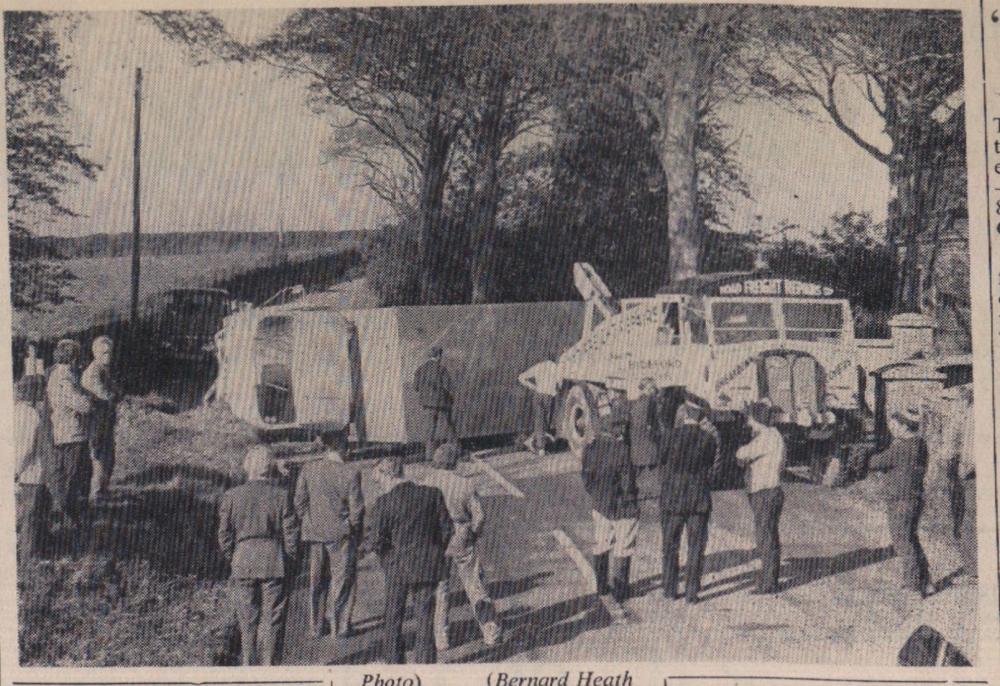 There were enough broken eggs to make the biggest omelette in local history when this lorry overturned outside Annery Lodge on the Bideford-Holsworthy road. The lorry, owned by South West Egg Products of Taunton, was loaded with eggs. The Fire Service had to be called to hose down the road. The lorry is understood to have skidded on the greasy road surface when the drive was taking avoiding action.