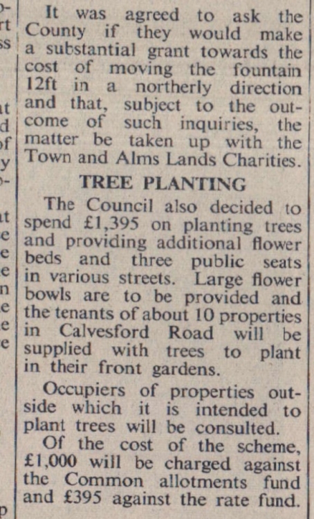 The plan of Torrington Town Council to restore the clock tower and drinking fountain in High Street at an estimated cost of £600 will rank for an 85% grant under the special environmental assistance scheme. But, added the Department of the Environment, the plan to resite the tower at an estimated cost of £750 was considered to be outside the scope of the scheme. It might, however, be possible to obtain a grant from the County Council for what was a highway improvement.